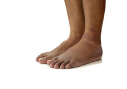 The most common injury that is likely to cause pain and swelling in the foot and ankle is an ankle sprain. Ankle sprain is caused due to tearing of ligaments, that are bands of tissue that connect the bones to each other and provide support to the ankle joint. These could get overstretched or torn due to the sudden rolling or twisting movements while running or even walking on uneven surfaces. The symptoms of an ankle sprain include pain, tenderness in the sprained ankle, stiffness in the ankle joint, bruising, and swelling. The severity of the symptoms depends on the degree of sprain. The symptoms will be more severe in a third degree sprain which is associated with complete rupture of the ligaments in the ankle, unlike the first and second degree sprain where the ligament gets overstretched or partially torn.